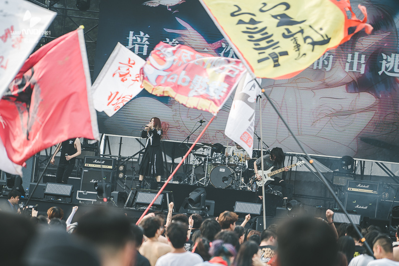 现场我们有看到来自全国各地的人们。他们会自备各类旗帜,有家乡为主题的,有乐队的,形成迷笛独特的“旗帜文化”,让迷笛变成一个个“小团体”的深度狂欢。大家在台下挥舞这迷笛大旗,点上狼烟,居然有几分“战国”的味道。不会有乐迷去认为旗帜影响了演出观看,大部分时候,旗帜会成为开火车的火车头。